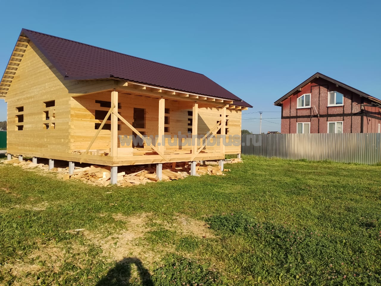 - Расходные материалы: межвенцовый утеплитель, деревянные нагеля, гвозди, скобы, антисептик на нижний венец, рубероид на гидроизоляцию и кровлю, ГСМ для инструмента, и т.д
