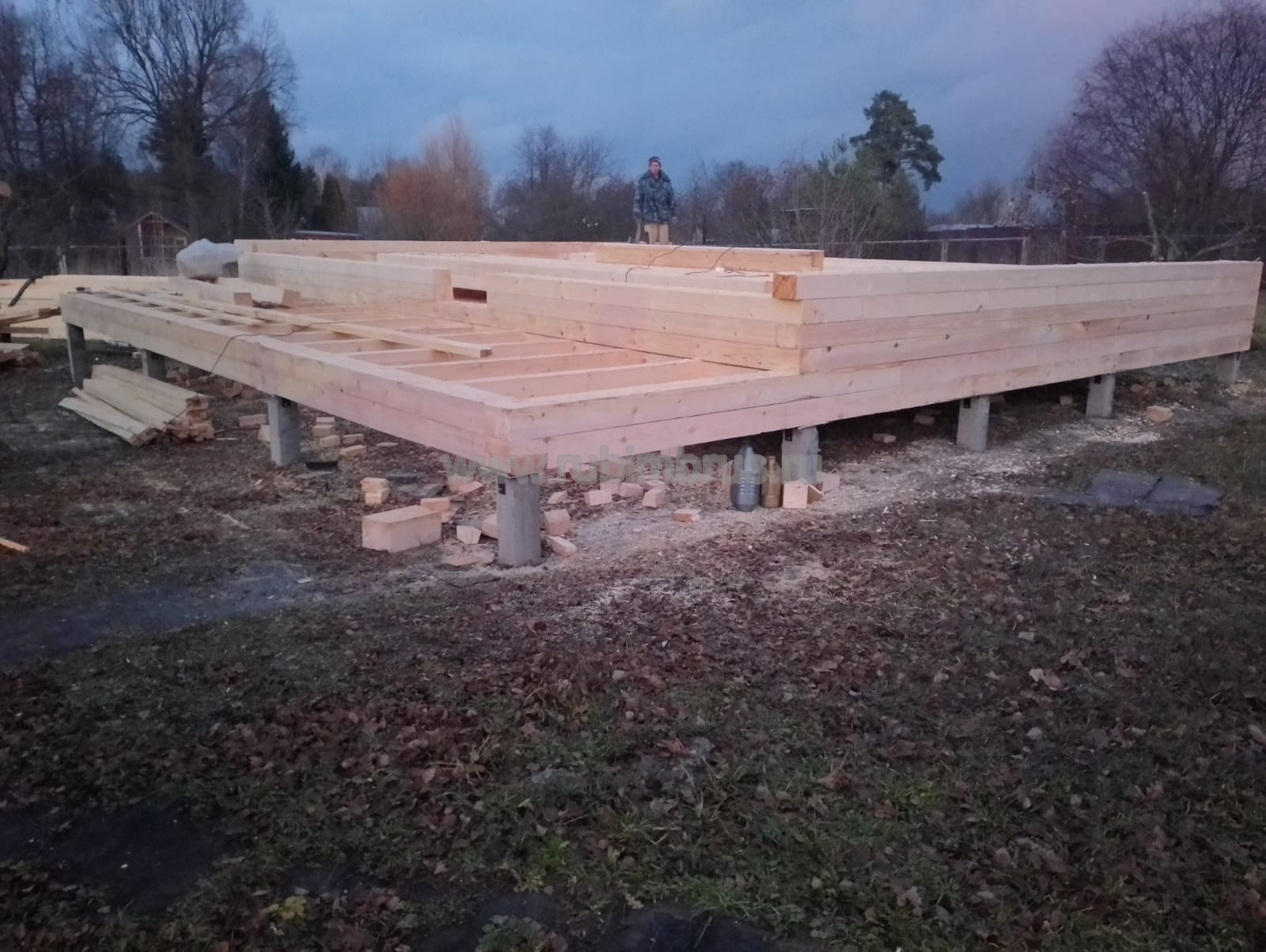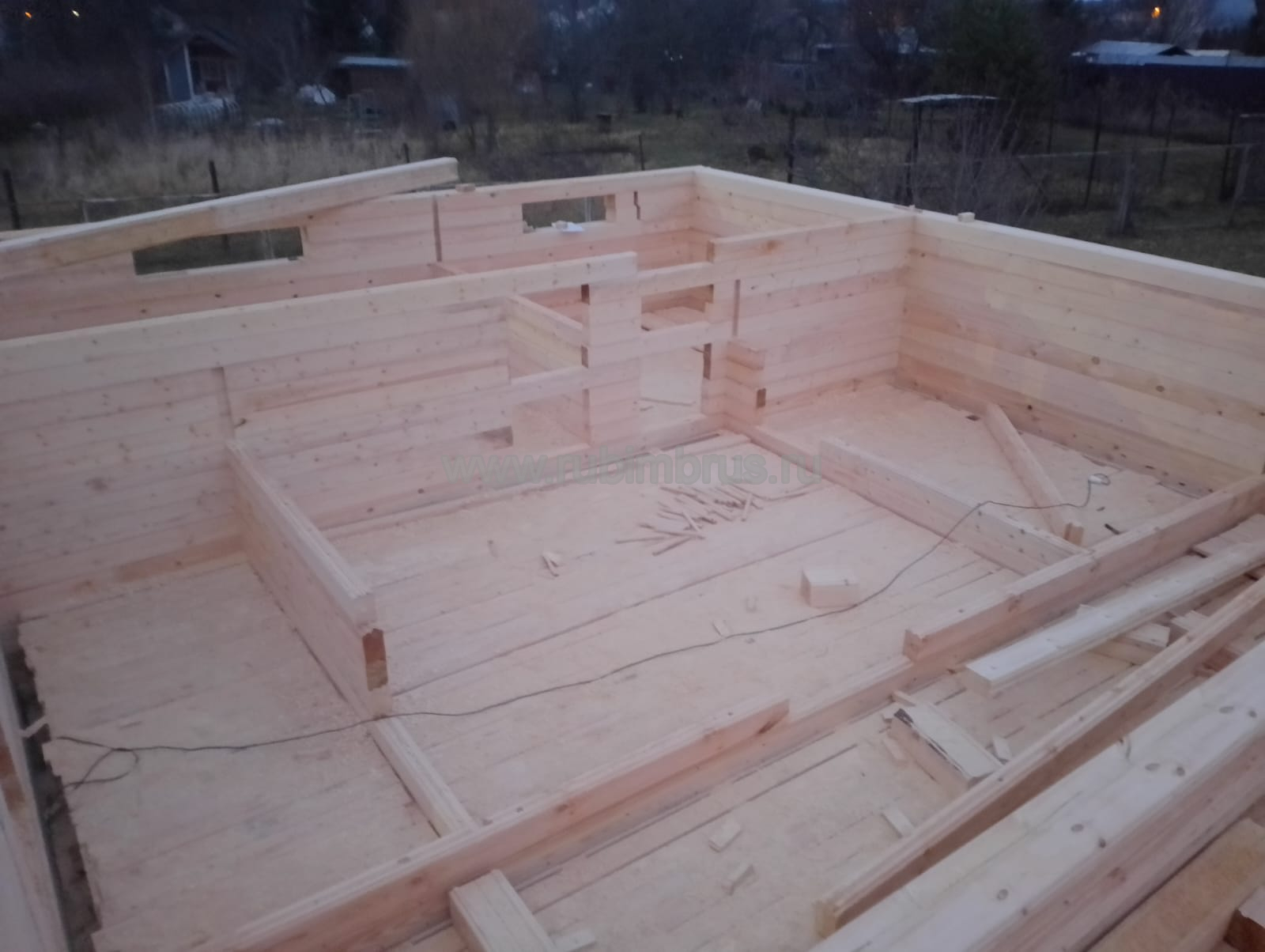 • Балки пола и потолка из бруса 100х150 мм с шагом 59 см