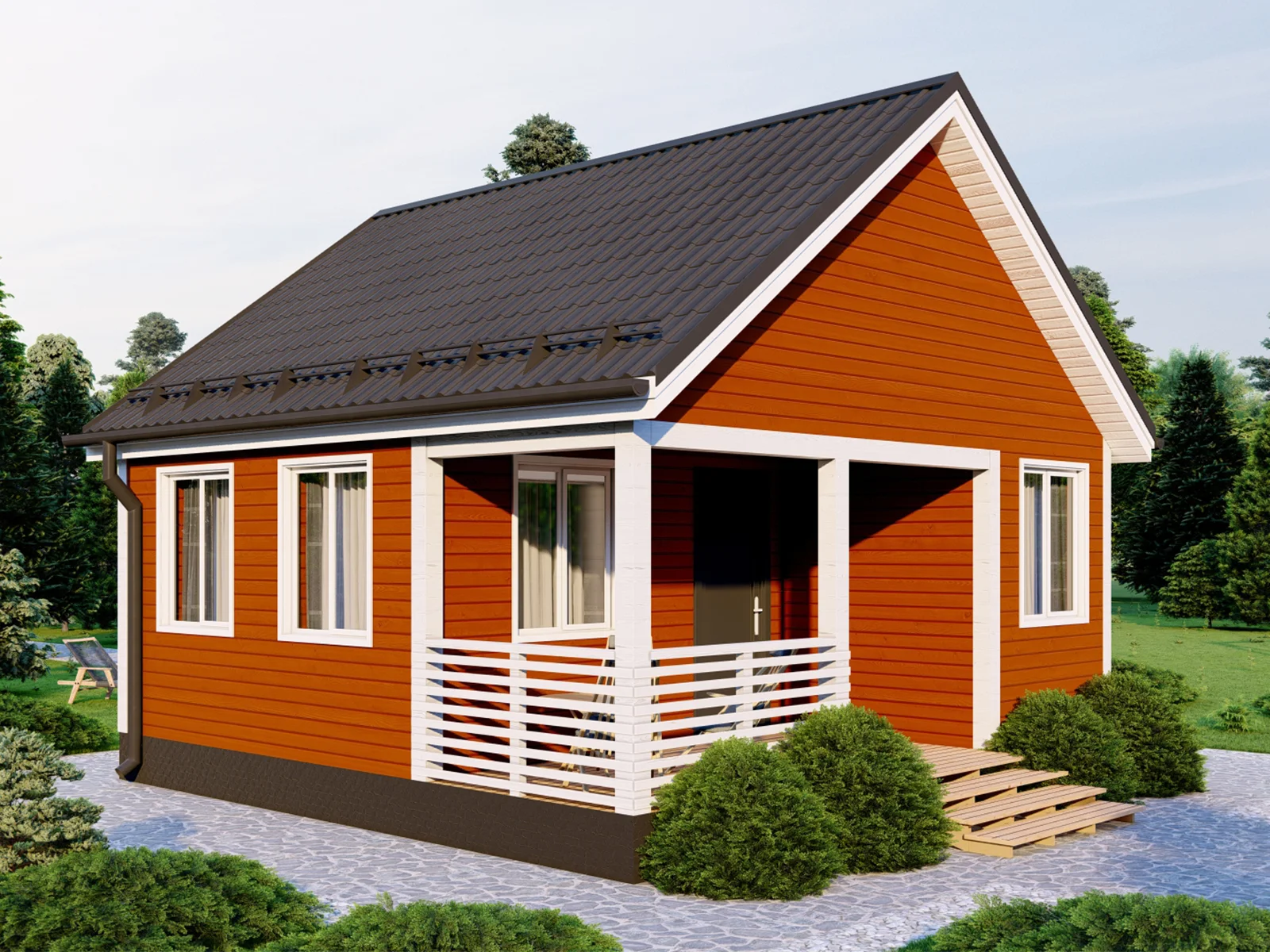 • Фронтоны крыши — доска обрезная 25х150 мм или (имитация бруса)