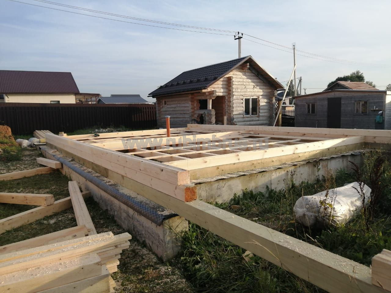 - Балки пола и потолка из бруса 100х150 мм с шагом 59 см