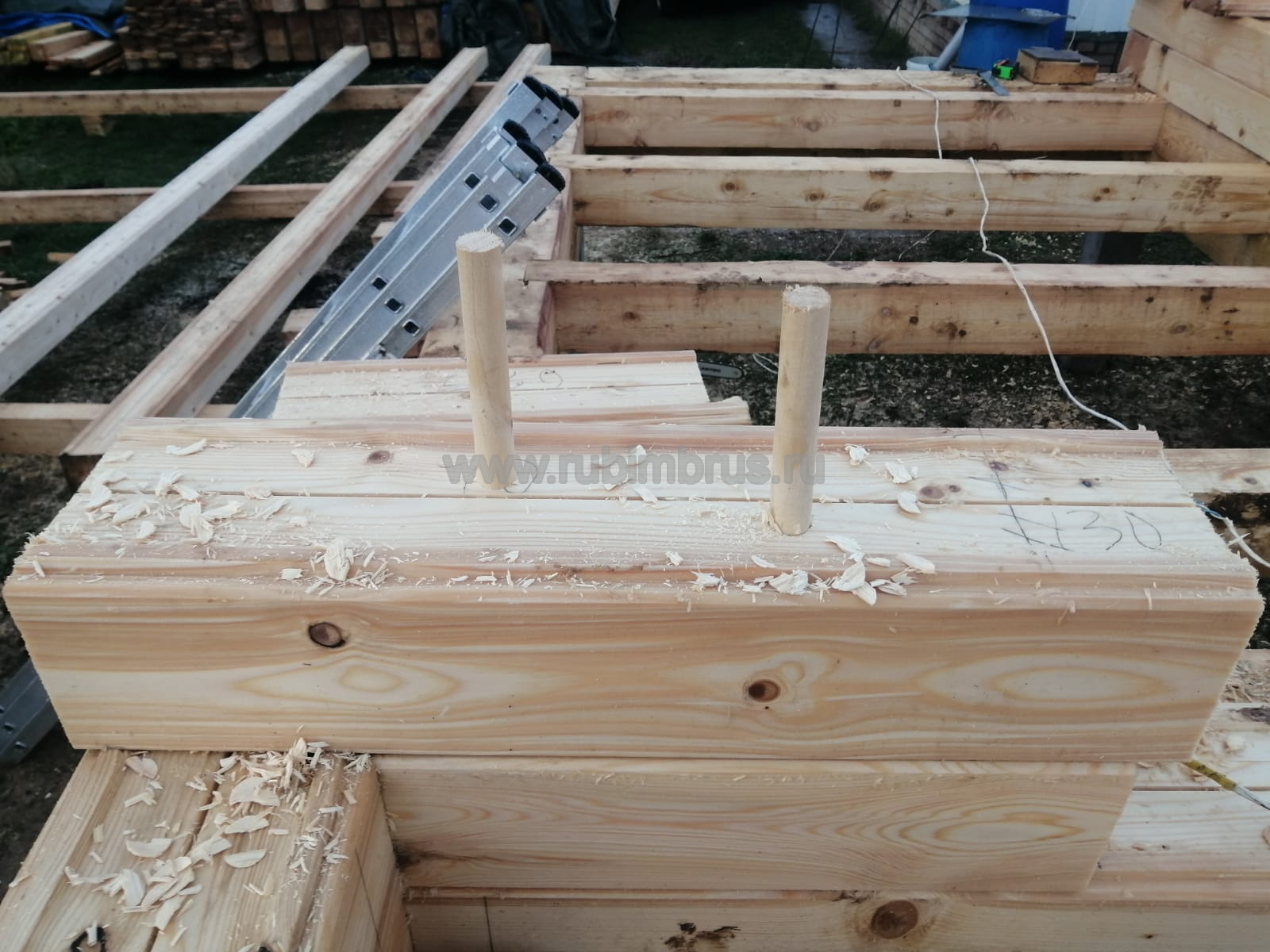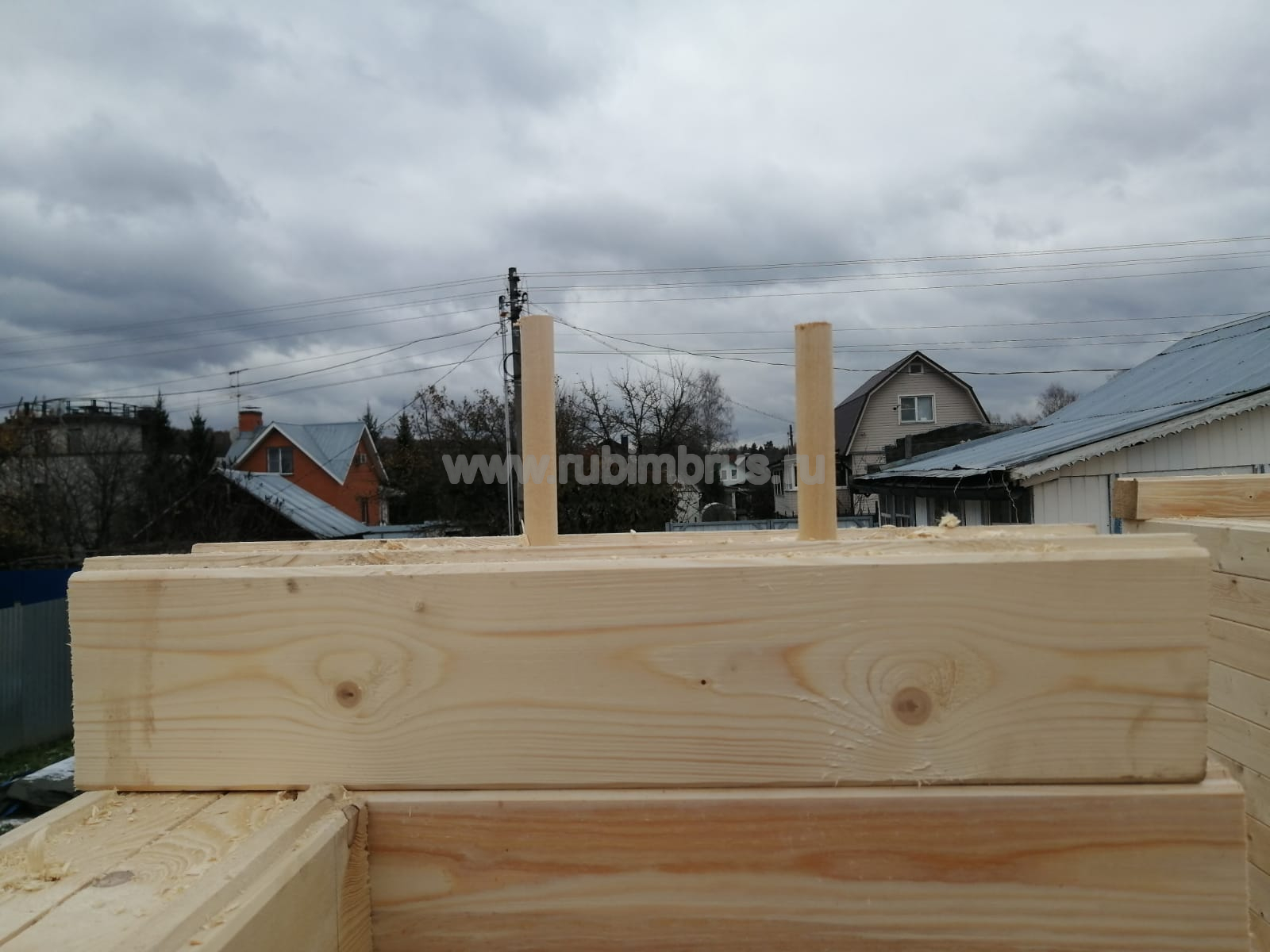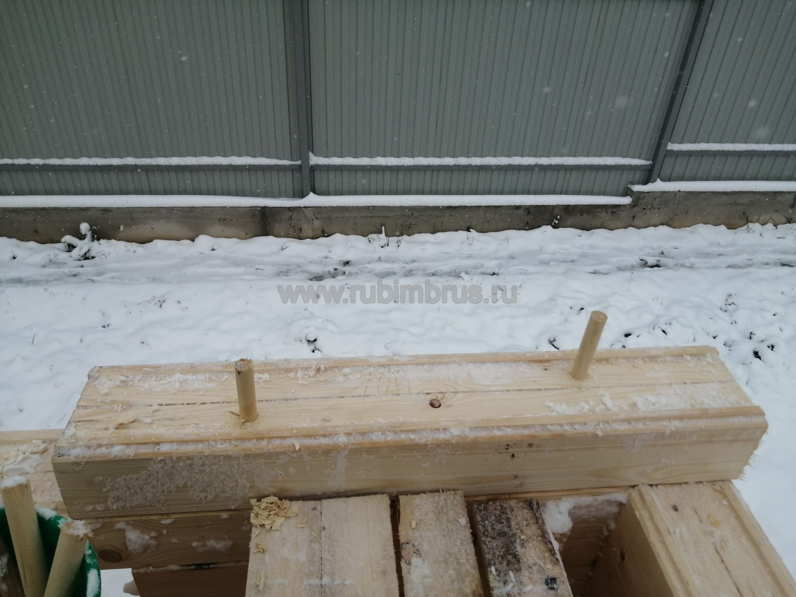 - Венцы скрепляются между собой берёзовыми нагелями в шахматном порядке