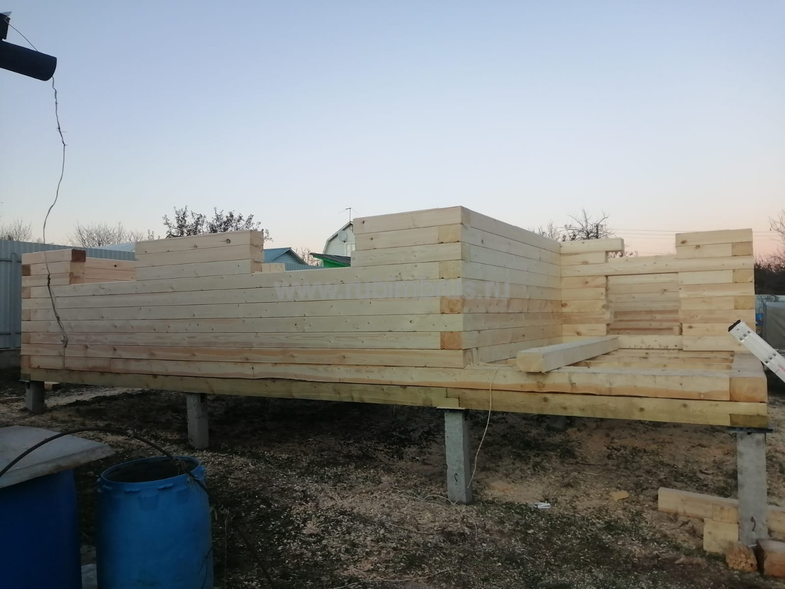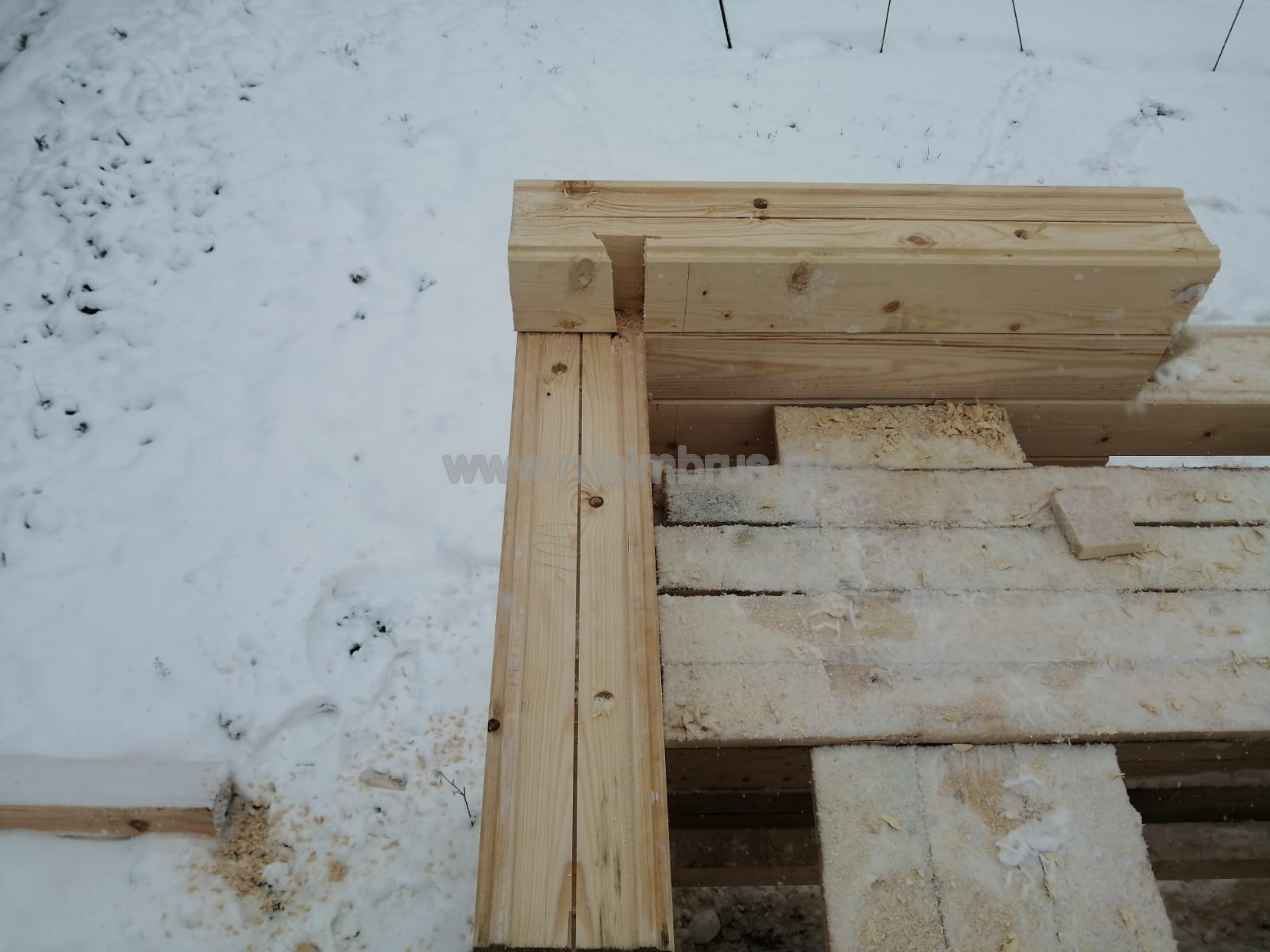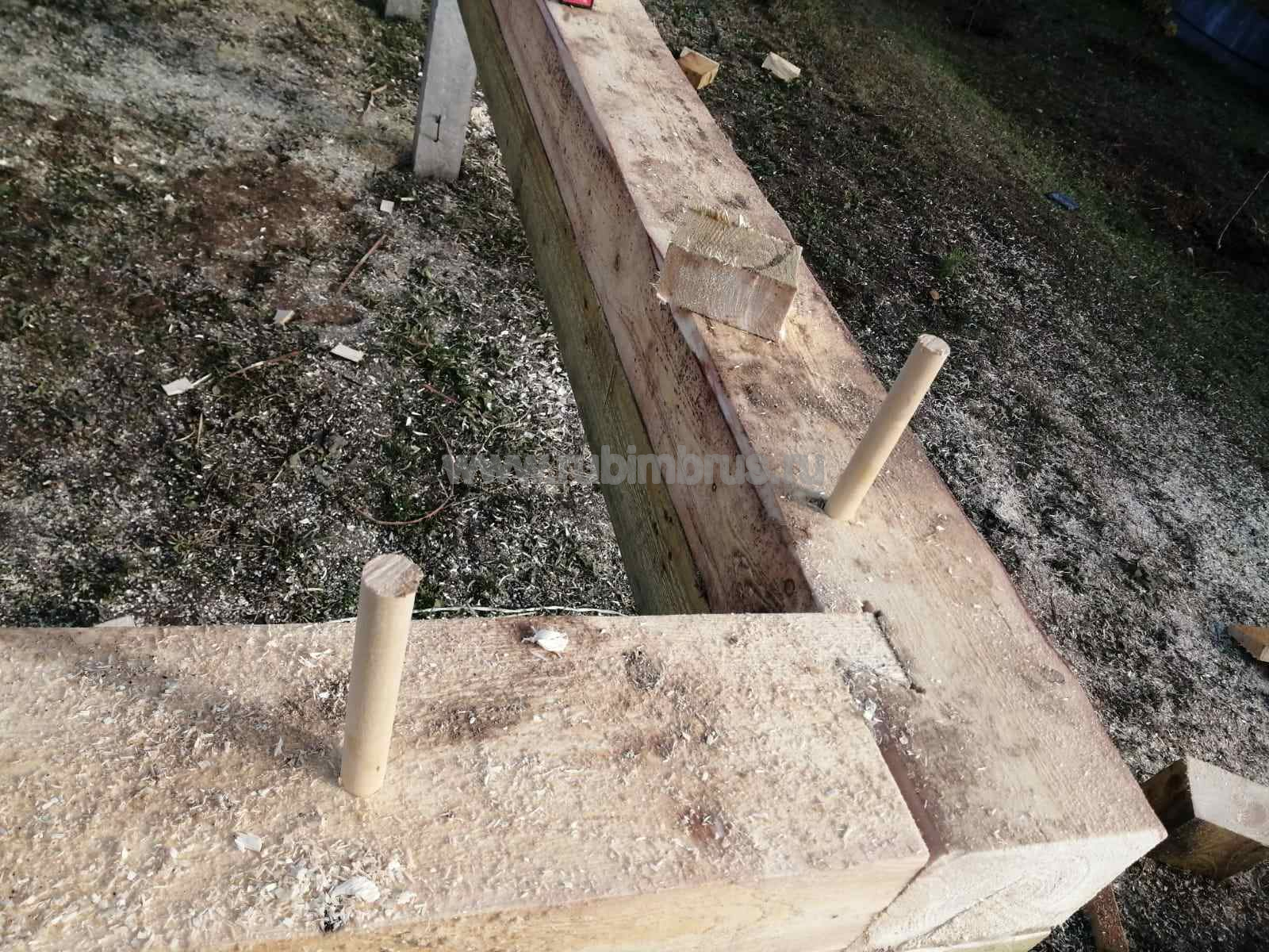 - Венцы скрепляются между собой берёзовыми нагелями в шахматном порядке