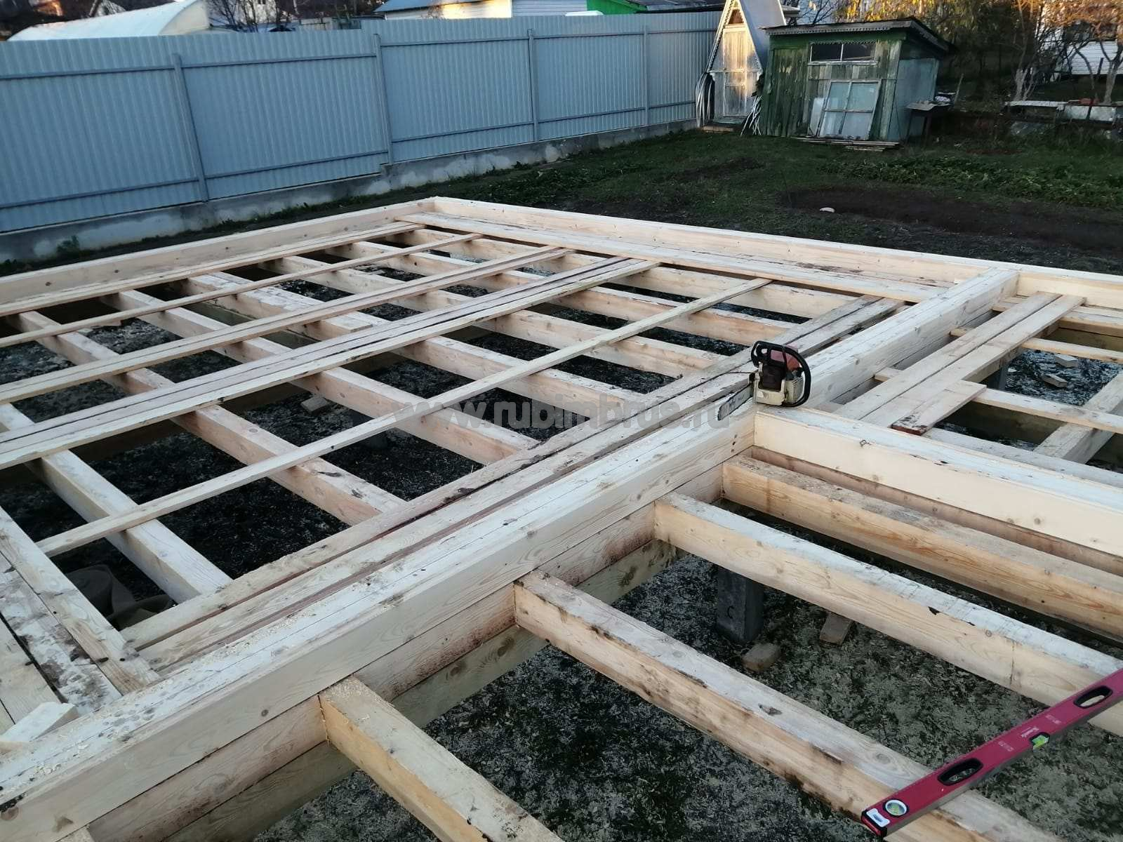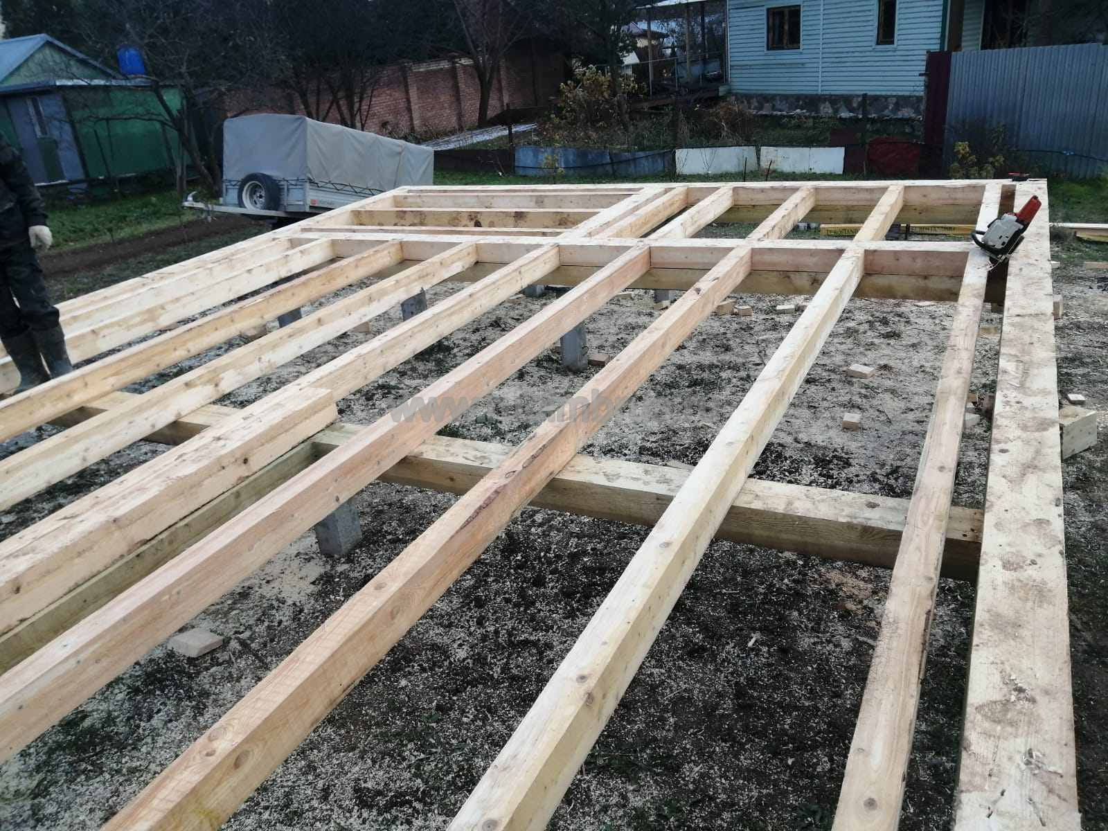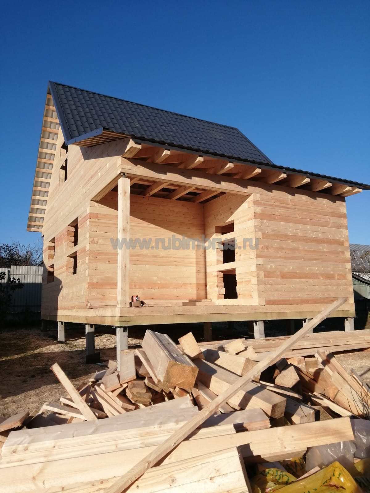 - Балки пола и потолка из бруса 100х150 мм с шагом 59 см